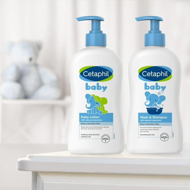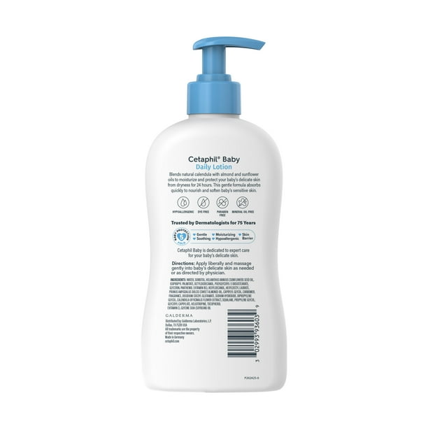 - Cetaphil Baby Daily Lotion with Organic Calendula, Sweet Almond & Sunflower Oils, 13.5 oz CETAPHIL BABY DAILY LOTION: Specially designed to moisturize and protect baby’s sensitive skin from dryness