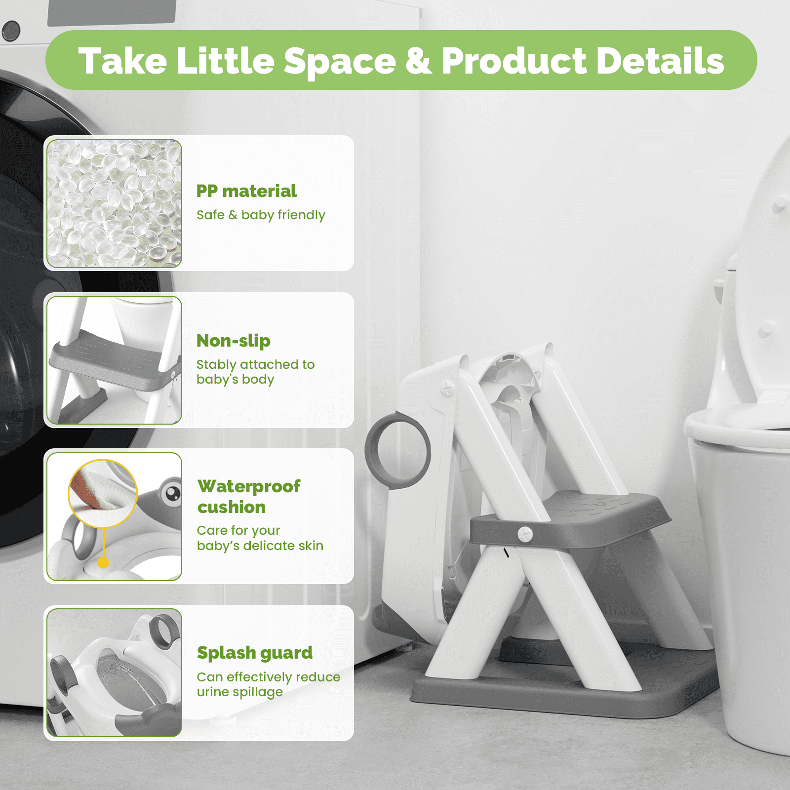 • 🐸【2-IN-1 USAGE】 Our versatile baby toilet training seat doubles as a step stool for kids to access higher spots, allowing your little ones to easily brush their teeth or reach for items. Its lightweight, compact design enables kids to carry it themselves, and the foldable feature ensures effortless storage.