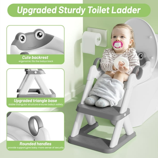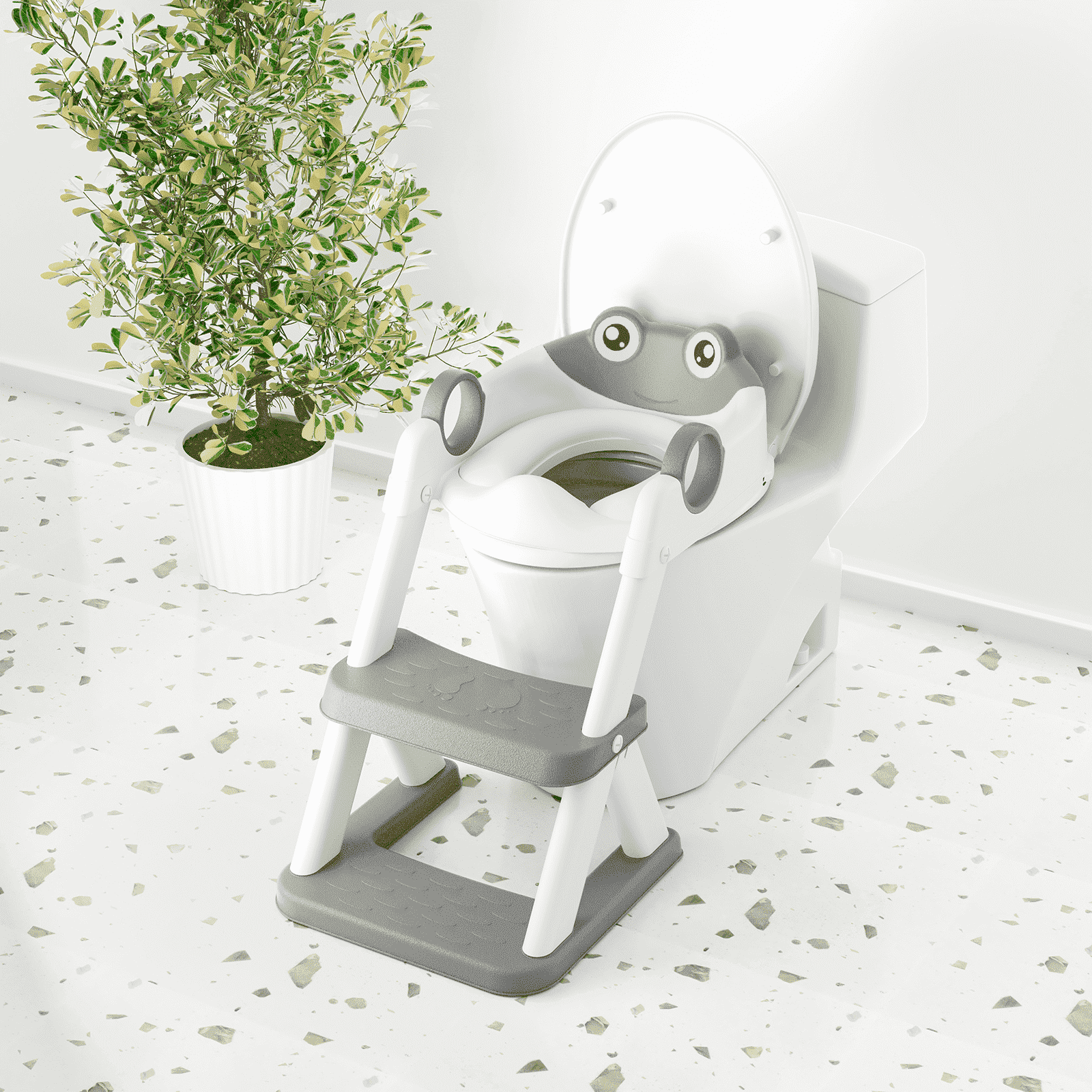 COOSEYA Potty Training Seat , Potty Training Toilet for Kids , Toddler Toilet Seat with Ladder, Children 12+ Months(Frog/Grey)