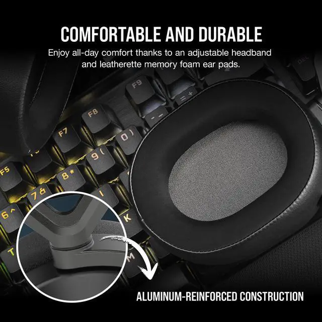 • Low-latency 2.4GHz wireless or Bluetooth® connection• Aluminum-reinforced construction• Plush leatherette adjustable memory foam ear pads• Sonarworks SoundID technology • Dolby ® Audio 7.1 surround sound on PC and Mac• High-quality custom-tuned 50mm neodymium audio drivers• Omni-directional microphone with flip-to-mute function• Easy-access on-ear volume control• Powerful CORSAIR iCUE software |