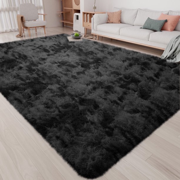 CozyDesg 9ft x 12ft Area Rugs, Soft Fluffy Area Rugs Floor Mat Floor Rugs for Living Room Bedroom Modern Decor Carpet,Black Gray