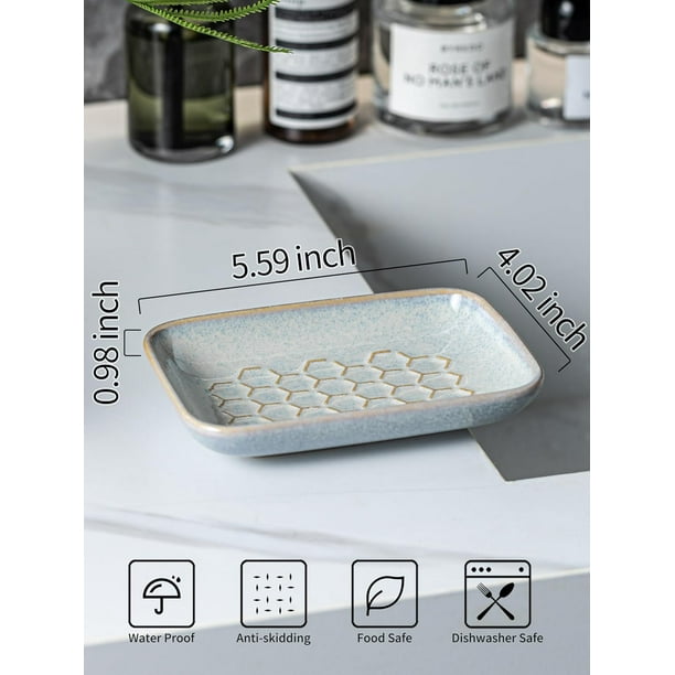 • PREMIUM CERAMIC & EFFORTLESS CLEANING: Crafted from premium and enduring ceramic, this soap dish features waterproof, slip-resistant, and heat-resistant properties. The unglazed bottom ensures stable placement to avoid sliding. Its smooth surface enables easy maintenance – gently wipe with a soft brush or clean in the dishwasher (weekly recommended).