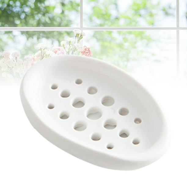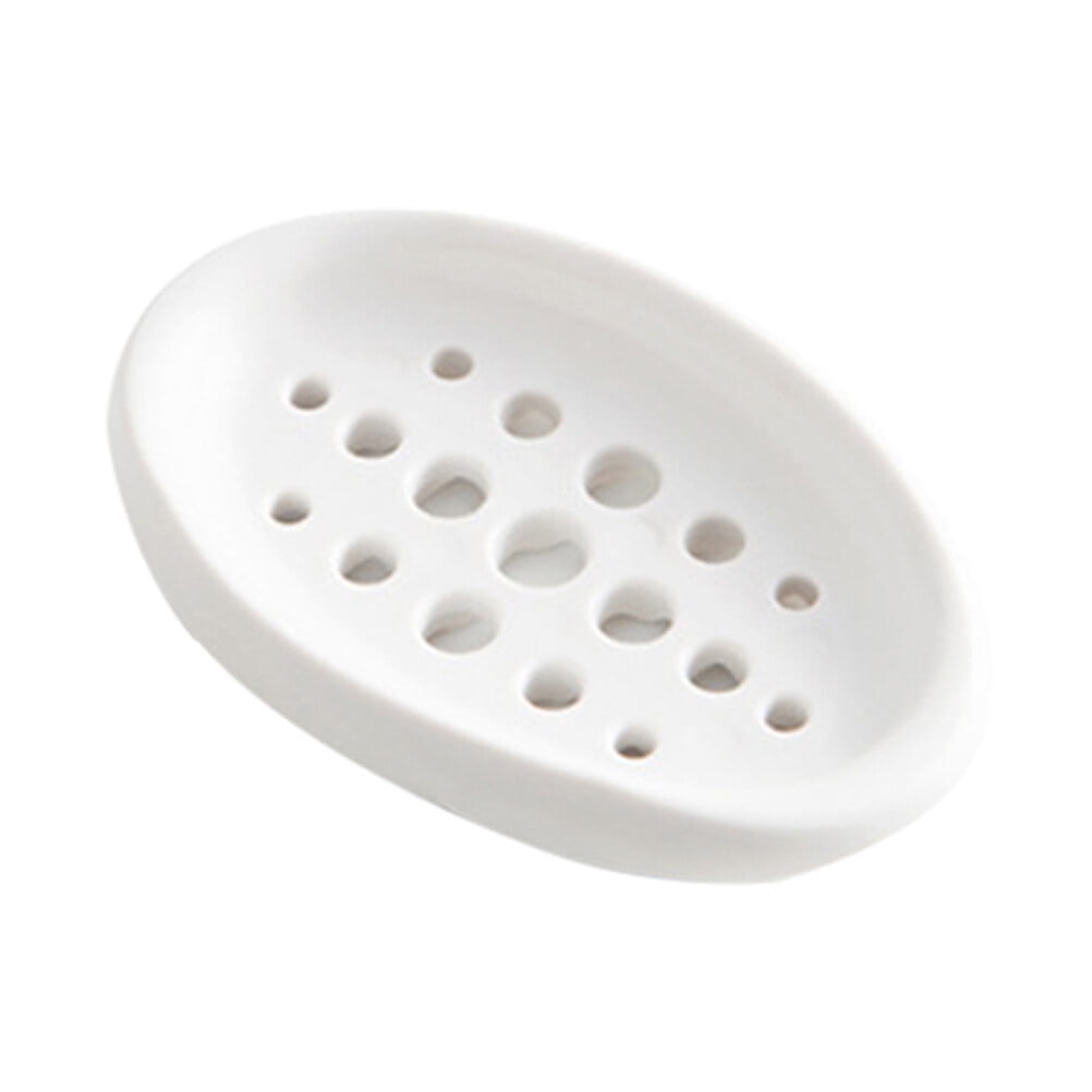 Creative Oval Shape Soap Dish Tray Drain Silicone Soap Box for Shower Bathroom Kitchen (White)