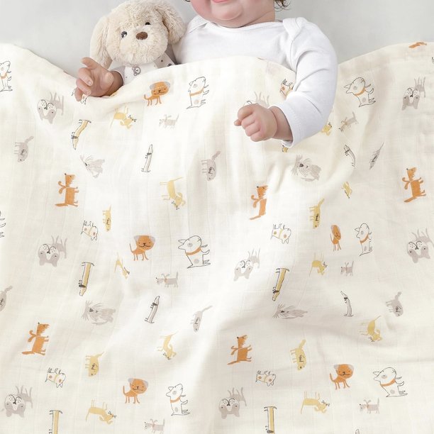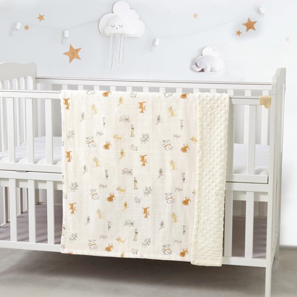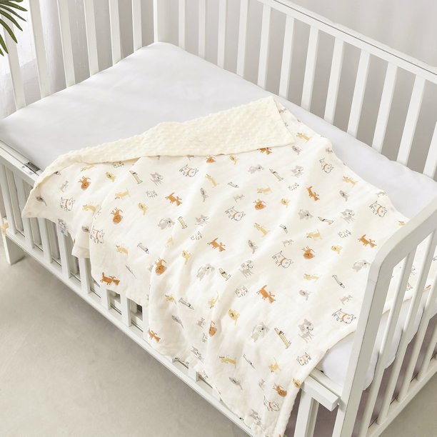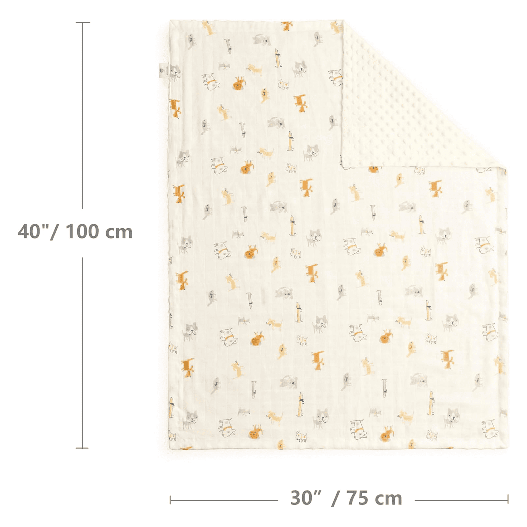 CREVENT 30”X40” Organic Muslin Cotton Baby Blanket for Newborns, Soft Mink Backing, Essential for Baby Shower Birthday Gift – Animal 75X100cm