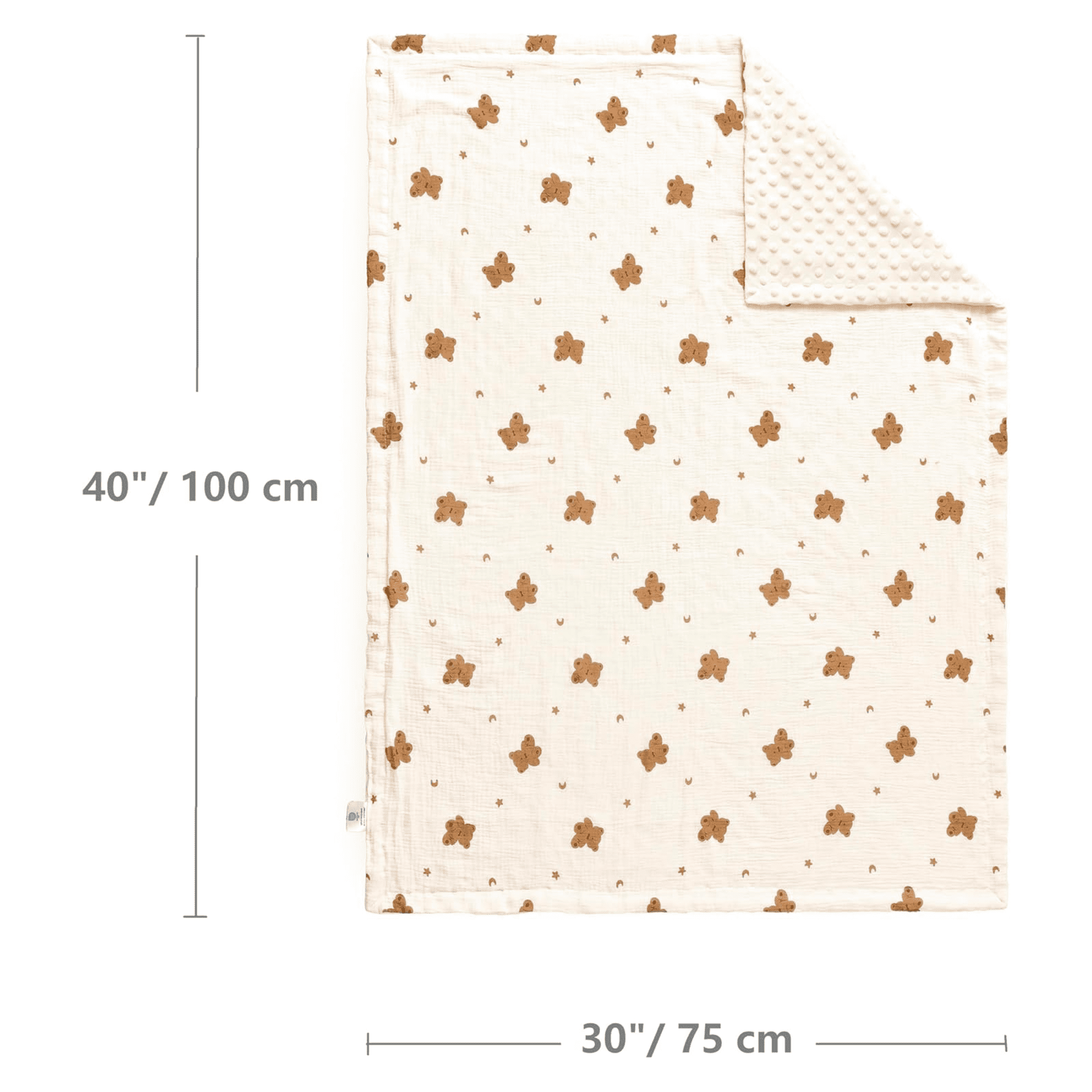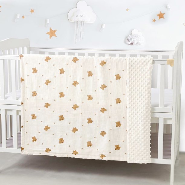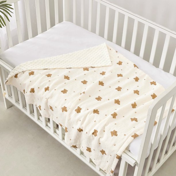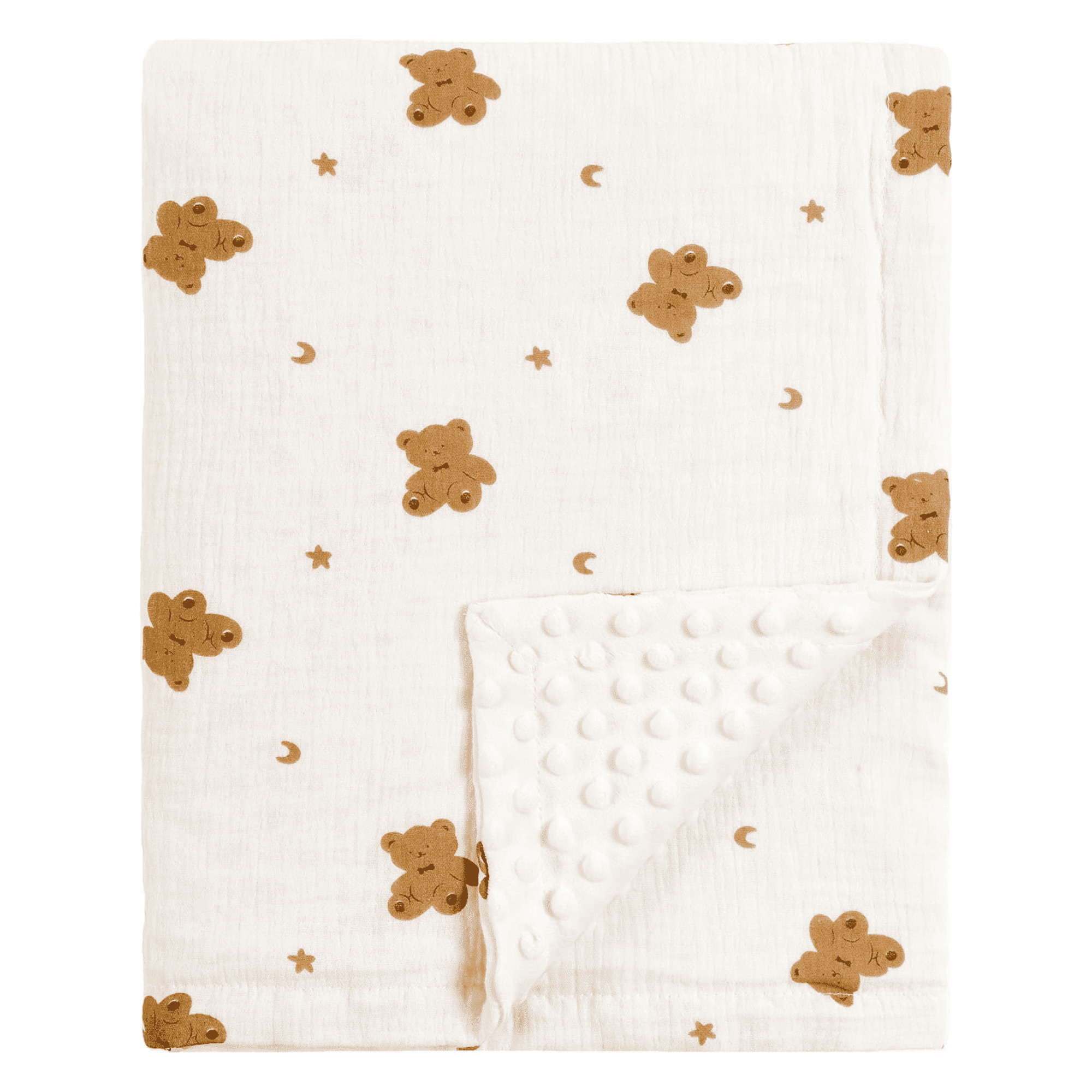 CREVENT 30”X40” Organic Muslin Cotton Baby Blanket for Newborns, Soft Mink Backing, Essential for Baby Shower Birthday Gift – Bear 75X100cm