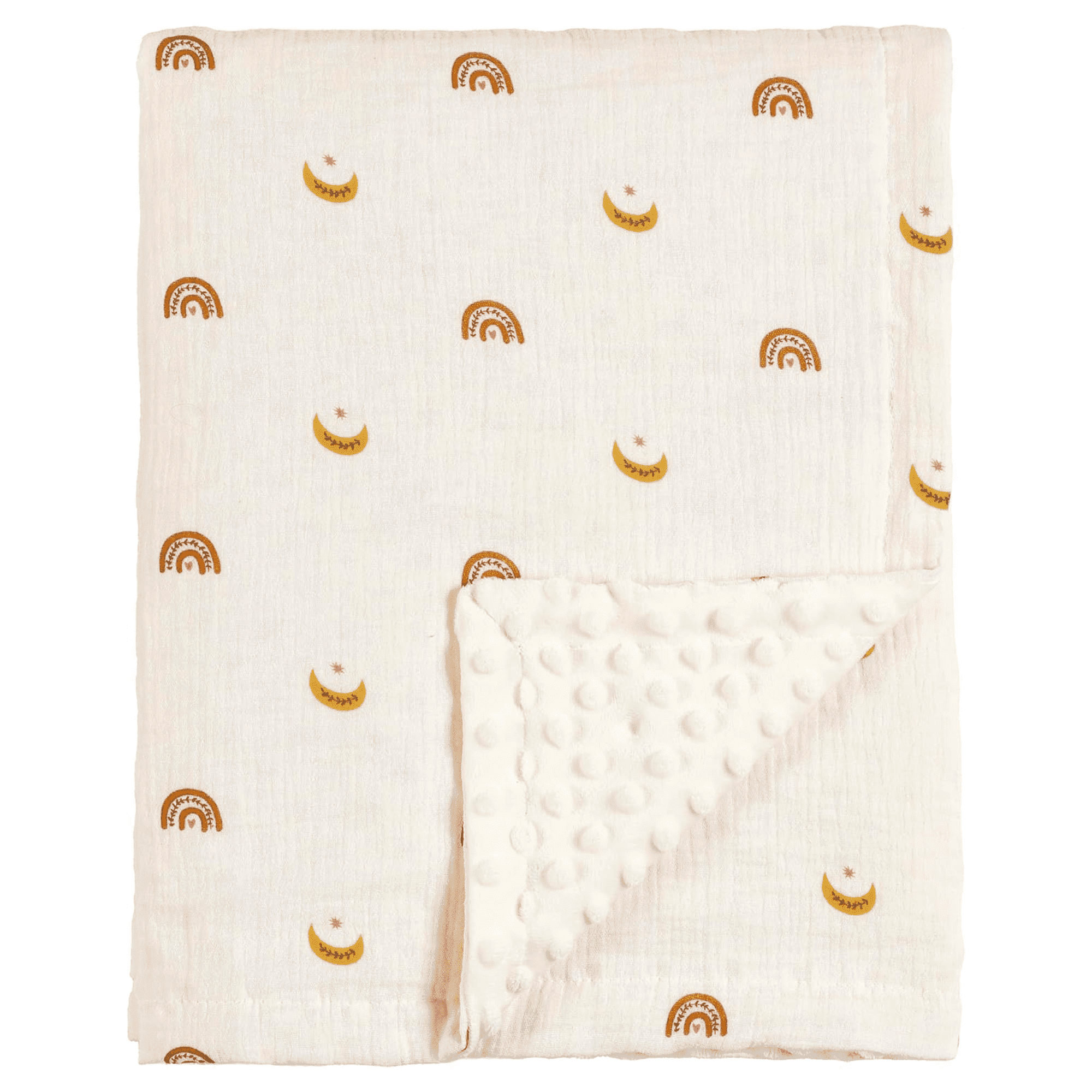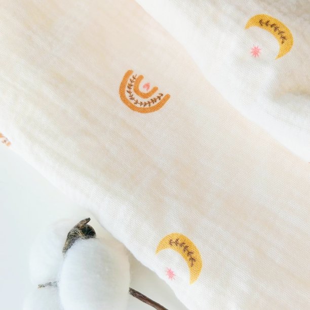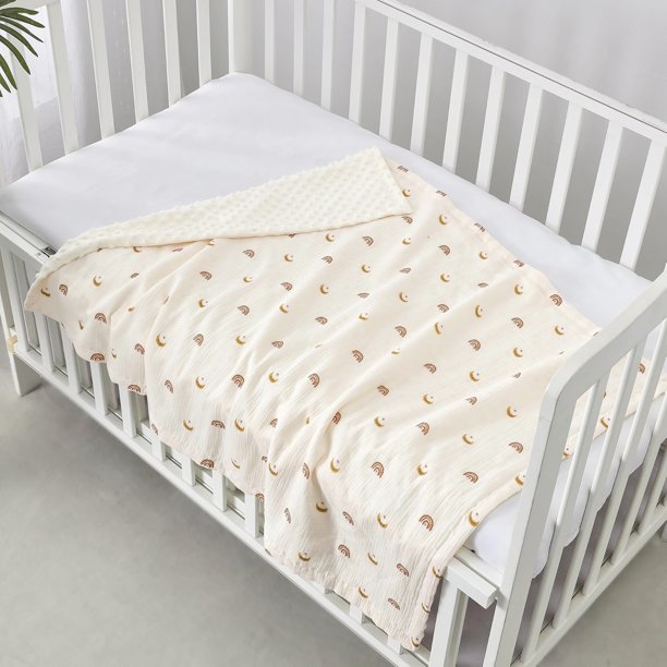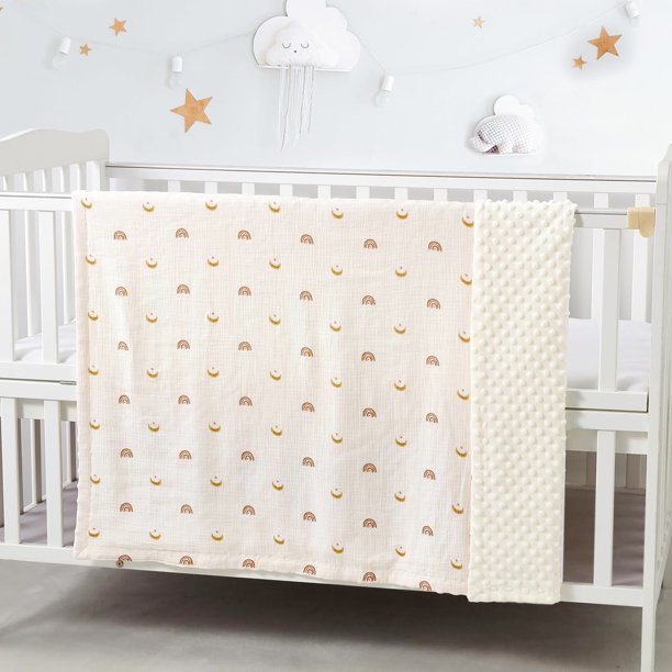 CREVENT 30”X40” Organic Muslin Cotton Baby Blanket for Newborns, Soft Mink Backing, Essential for Baby Shower Birthday Gift – Moon 75X100cm