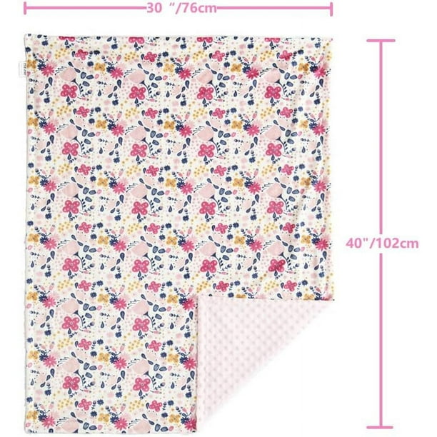 CREVENT Minky Floral Baby Blanket for Girls, Soft Plush Receiving Crib Blanket for Newborns Toddlers Bedding – Flowers 30×40 Inches