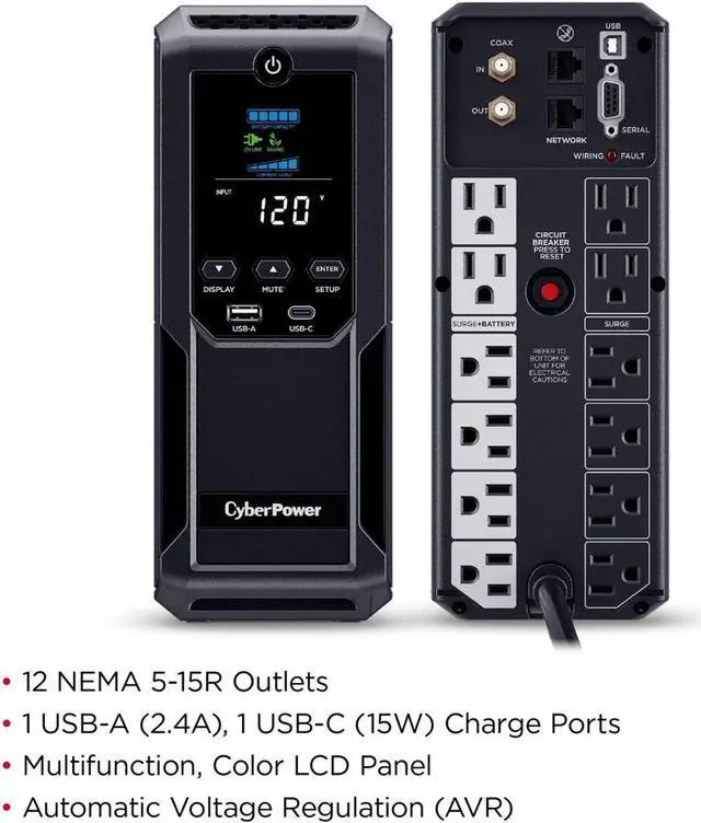 CyberPower CP1350AVRLCD3 Intelligent LCD UPS Systems – 1350VA/815W, 120 VAC, NEMA 5-15P, Mini-Tower, 12 Outlets – Pappy Mall