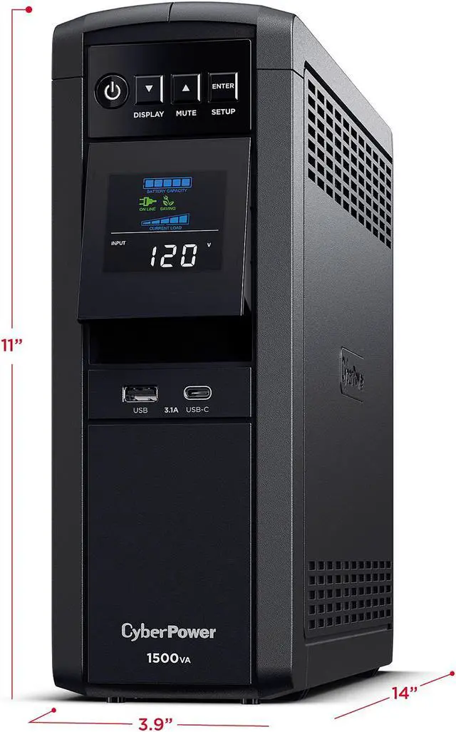 CyberPower CP1500PFCLCD PFC Sinewave UPS Systems – 1500VA/1000W, 120 VAC, NEMA 5-15P, Mini-Tower, Sine Wave, 12 Outlets, LCD, PowerPanel – Pappy Mall