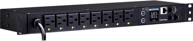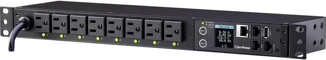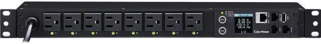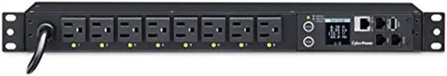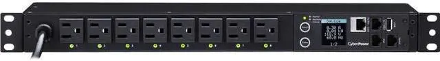 CyberPower PDU41001 Single Phase 100 – 120 VAC 15A Switched PDU – 8 Outlets, 12 ft, NEMA 5-15P, Horizontal, 1U, SNMP, LCD – Pappy Mall