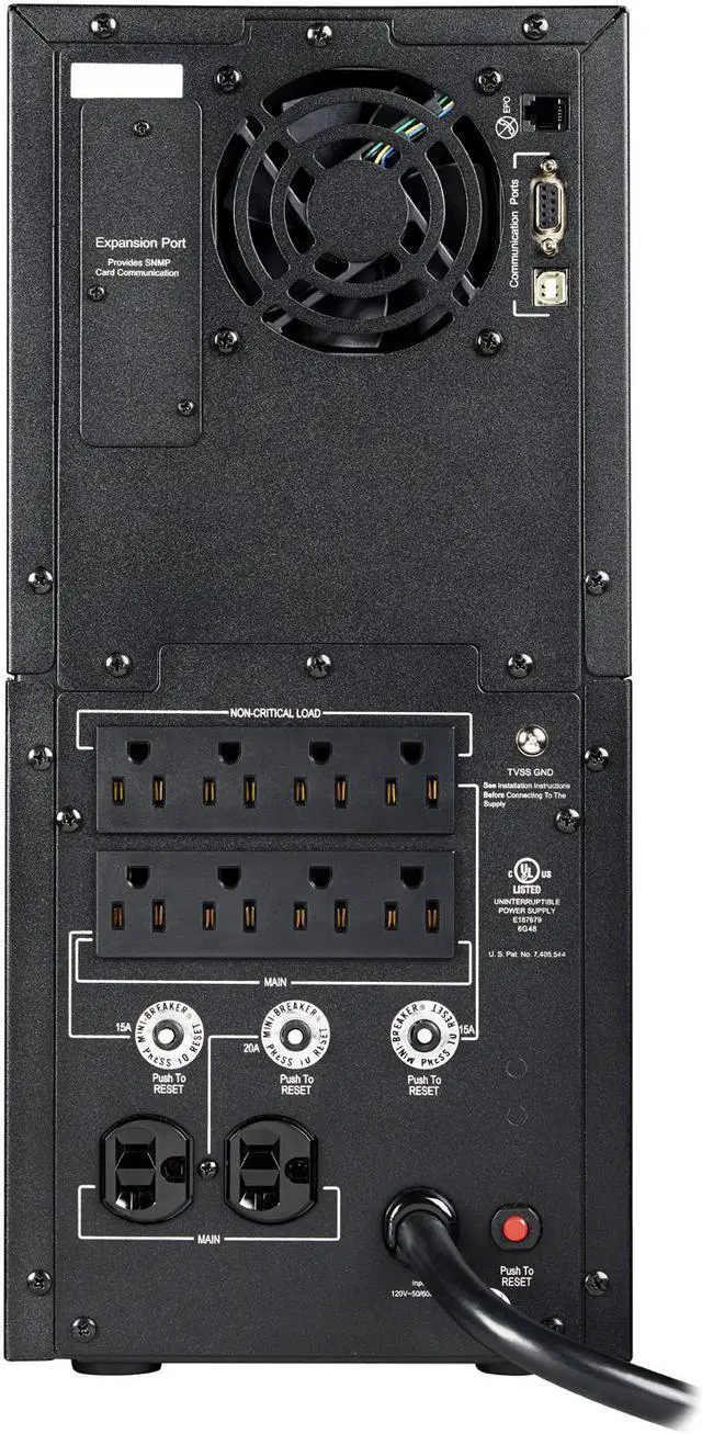 3000VA ,2700W Pure Sine Wave UPSLine-Interactive TopologyFull AVR Buck/Boost & GreenPower UPSTower Form FactorExtendable LCD Control PanelSNMP/HTTP Remote Management Option10 Outlets ,USB ,Serial and EPO PortsEMI/RFI FiltersPowerPanel Business Edition |