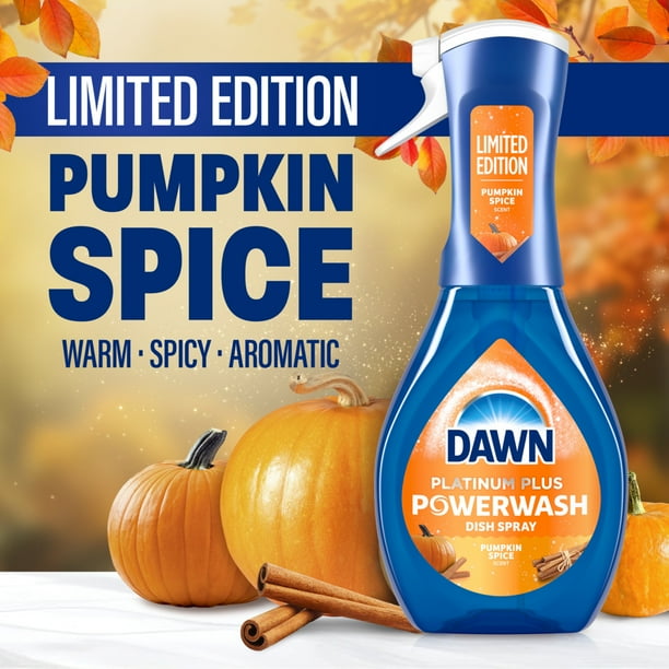 Dawn Powerwash Dish Spray removes up to 99% of grease and grime in half the time*. Powerwash has 3 cleaning boosters not found in traditional dish soaps that remove food and grease 5X faster*. And because it cleans so well, you can replace multiple cleaning products around your home for counters, stoves, grills, and stains on laundry. Embrace the holiday season with the cozy and festive scents of pumpkin. Dawn Powerwash Dishwashing Liquid, Pumpkin Spice, 16 fl oz delivers the power of an overnight soak in minutes. For everyday messes, just spray the suds on and wipe, no water needed until rinsing. For tougher messes, let the suds sit a few minutes before wiping. Save money and reduce waste by reusing your sprayer. And now try one of our limited edition Dawn Powerwash Seasonal Dish Sprays to win the holiday season. Whether you’re preparing for a holiday gathering or just enjoying the fall season, Dawn Powerwash helps keep your space clean and inviting. Let the essence of pumpkin fill your home, creating a warm and welcoming atmosphere for every festive moment. Don’t forget to add our holiday scents when shopping for your Christmas tree, Christmas Candy, and toys! (*vs. leading competitive brand’s ultra-strength formula on a representative meal for two).