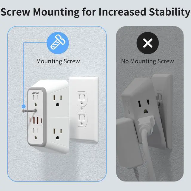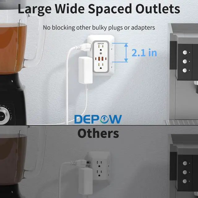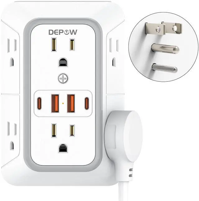 DEPOW Wall Charger 6 AC Outlet Extender with 4 USB Charging Ports(2 USB C), 3-Sided Power Strip Multi Plug Wall Outlet Splitter Adapter Spaced for – Pappy Mall