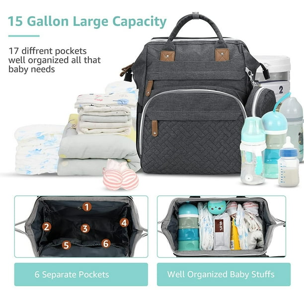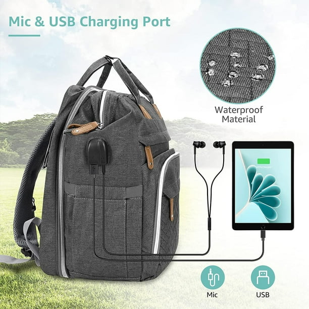DERSTUEWE Baby Diaper Bag Backpack with Changing Station, Multifunctional Waterproof Portable Baby Bag for Travel, Dark Grey