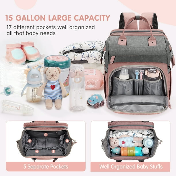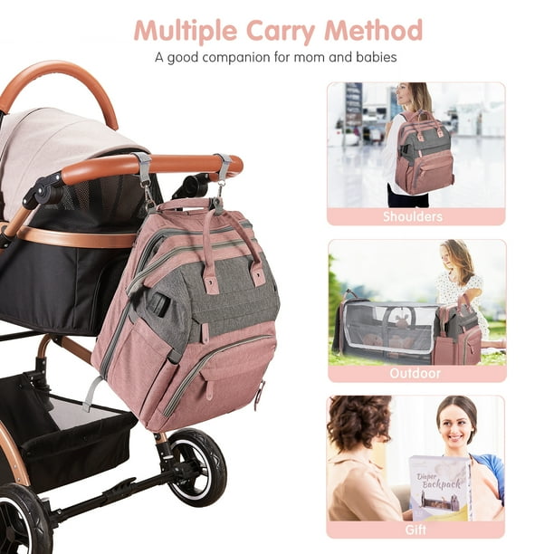 DERSTUEWE Baby Diaper Bag Backpack with Changing Station, Multifunctional Waterproof Portable Baby Bag for Travel, Pink
