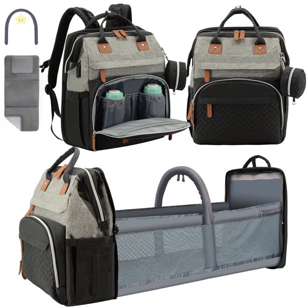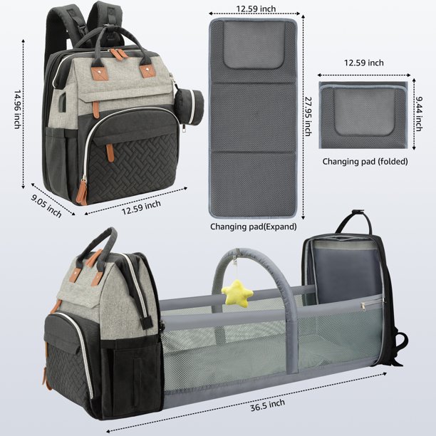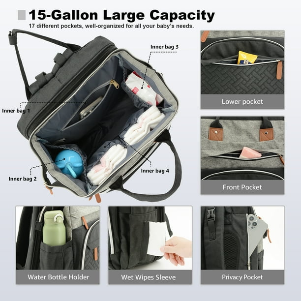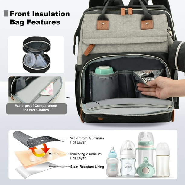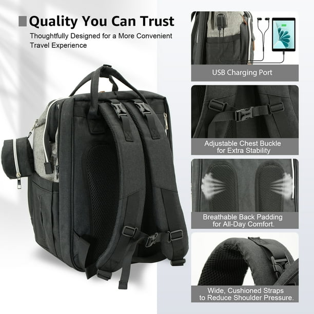 Diaper Bag Backpack for Mom and Dad – Large Capacity Baby Bag w/ USB Port – Waterproof Travel Backpack for Baby Essentials, Stylish Gray/Black