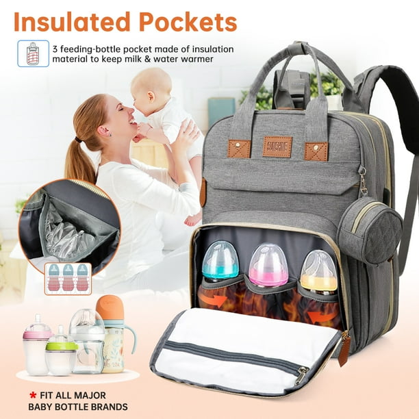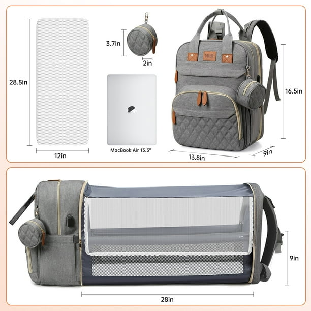 Diaper Bag Backpack, Multifunction Diaper Bag Backpack with Changing Station, USB Charging Port & Foldable Crib, Large Capacity Travel Backpack w/Sunshade&Pacifier Case&Stroller…