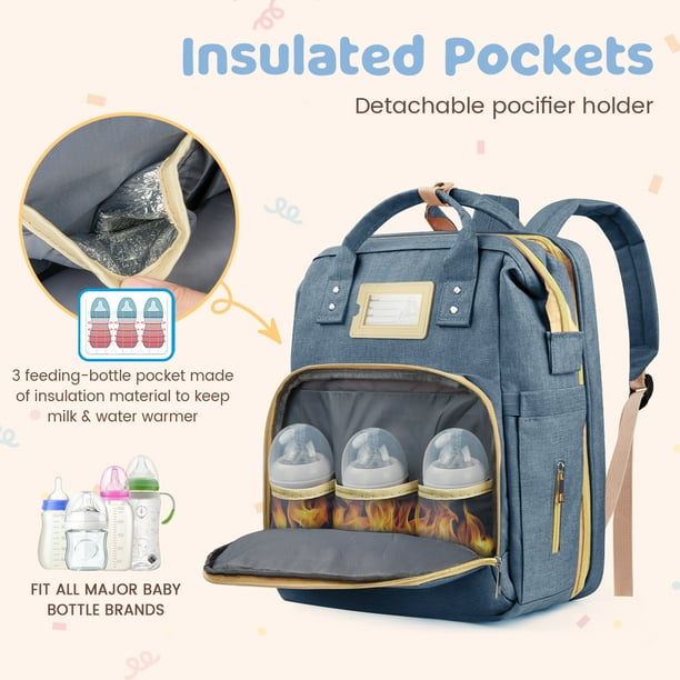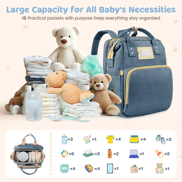 Diaper Bag Backpack, Multifunctional Baby Changing Bag with Foldable Crib & Insulated Milk Bottle Pocket, Large Capacity Travel Backpack with USB Charging Port & Stroller Strap…