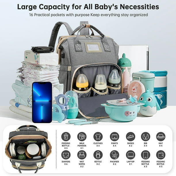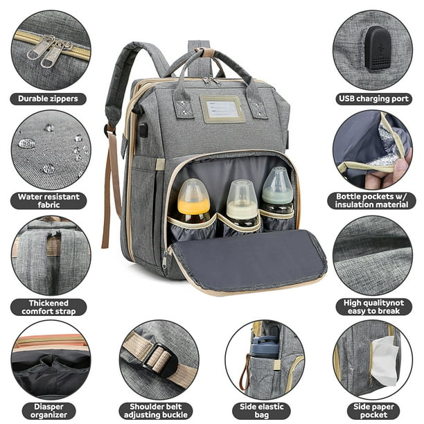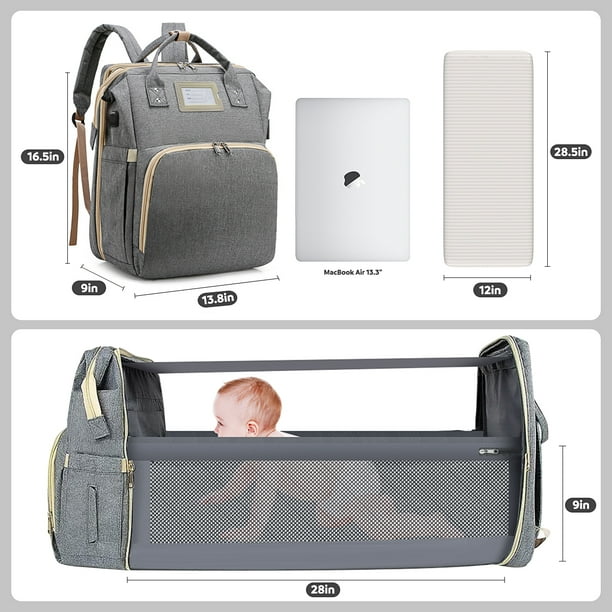Diaper Bag Backpack, Multifunctional Baby Changing Bag with Foldable Crib & Insulated Milk Bottle Pocket, Large Capacity Travel Backpack with USB Charging Port & Stroller Strap…