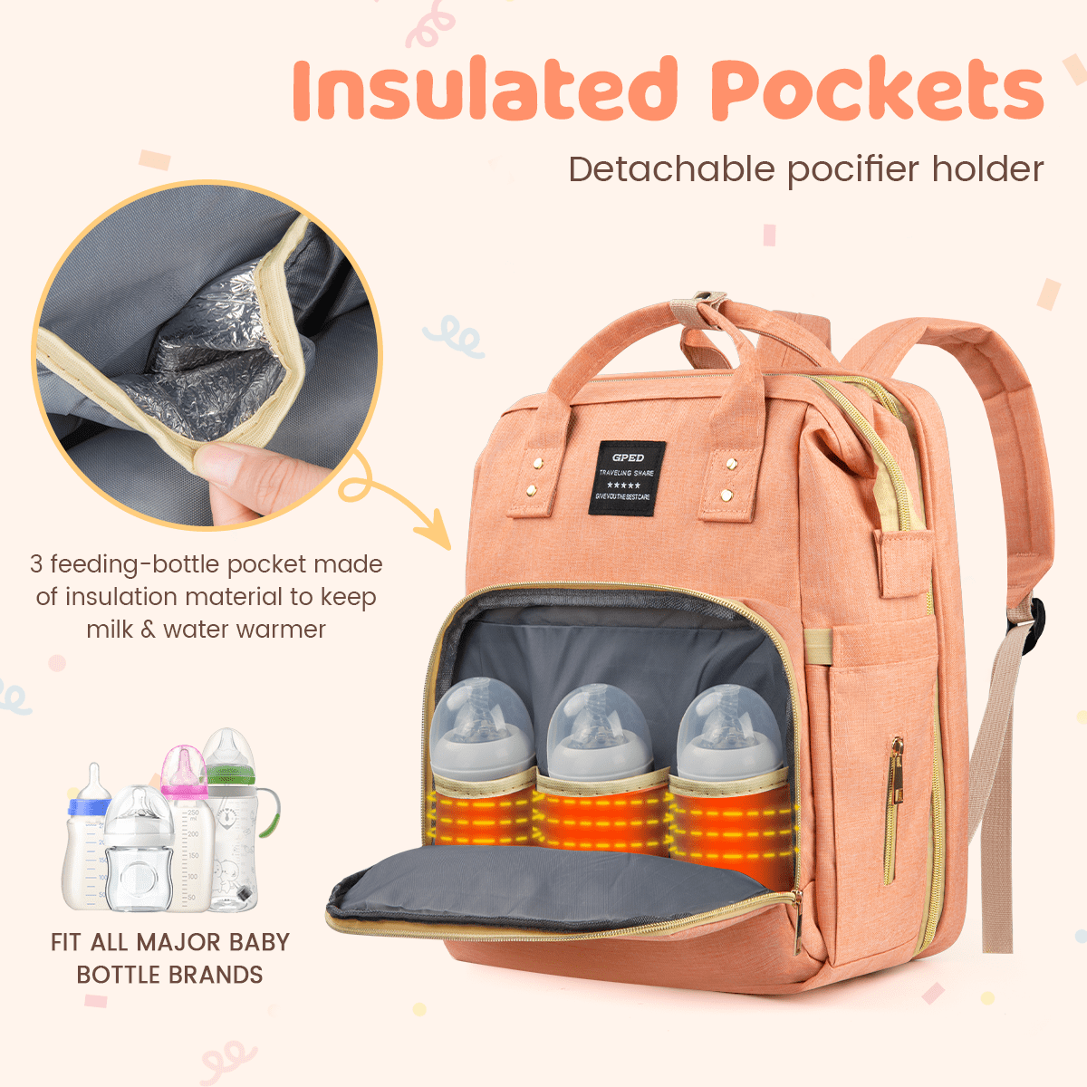 Diaper Bag Backpack, Multifunctional Baby Diaper Bags with Foldable Crib & Changing Station,Large Capacity Portable Travel Back Pack W/ USB Charging Port & Stroller Strap, Baby…