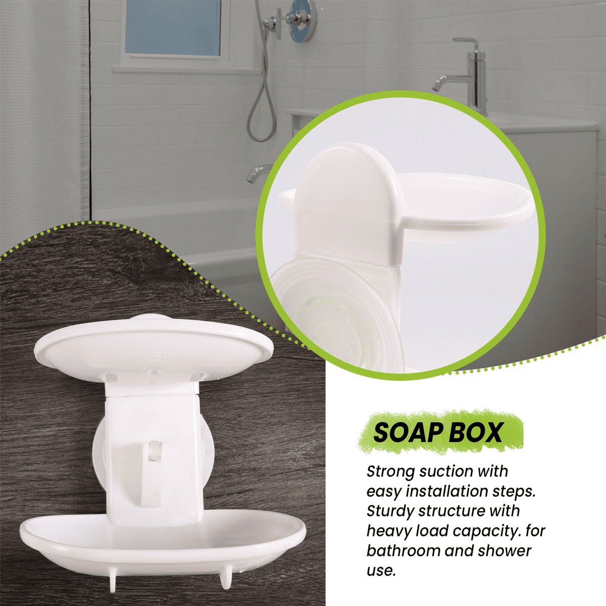 • Perfect soap holder for bathroom and shower use.