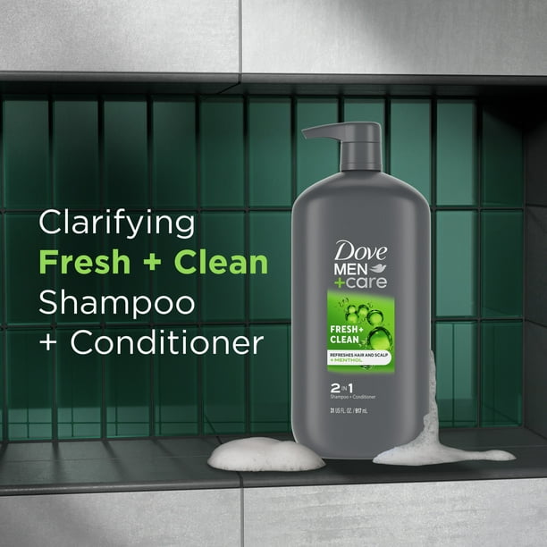Dove Men+Care Daily 2-in-1 Shampoo and Conditioner Fresh & Clean, 31 oz. Want squeaky clean hair? Don’t look further – this men 2 in 1 Shampoo and Conditioner effectively cleanses hair while protecting from every day dryness. Enriched with caffeine and menthol, for a fresh after use feeling for longer. Perfect for oily hair and scalp! Hair care for stronger, healthy hair every day. This men shampoo is available in the following sizes: 12 oz, 20.4 oz, 25.4 oz, 31 oz, 40 oz and 3 oz perfect for travel. Great haircare does not stop in the shower! Complete your men’s grooming routine with Dove Men + Care styling range. This refreshing 2 in 1 shampoo and conditioner for men goes well with the new styling line: Dove Men + Care Molding Paste for relaxed & flexible hair with a natural look, Polishing Pomade for soft & smooth hair with a sleek and polished finish, Taming Gel for all-day hold and shine for well-defined hair, or Shaping Putty for thick & full hair with a conditioned look. Use it with the entire line of Dove Men + Care for the perfect every day grooming routine, such as Dove Men Extra Fresh Foaming Body & Face Wash and Dove Men Extra Fresh Dry Spray Antiperspirant.