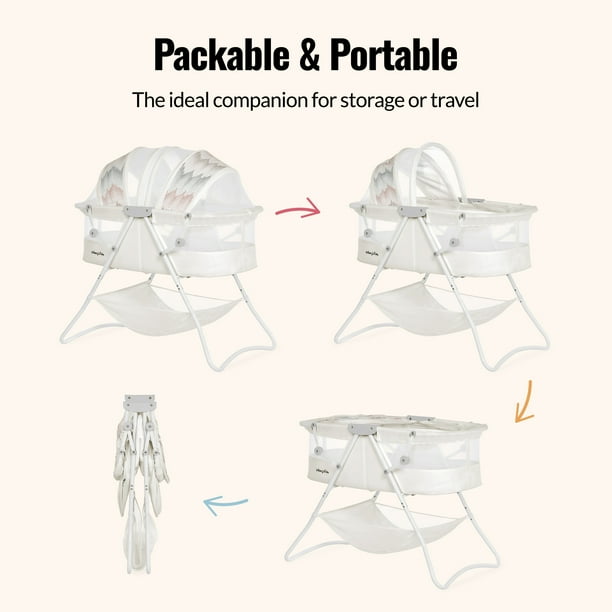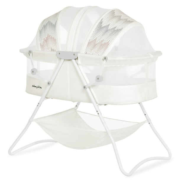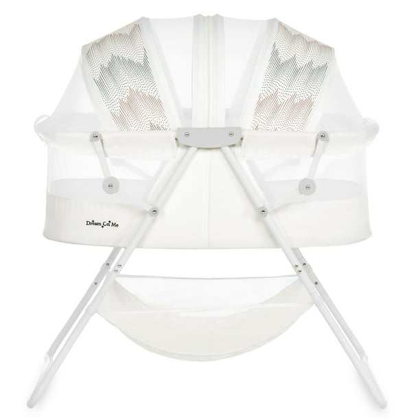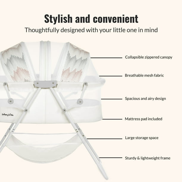 Dream On Me Karley Bassinet in Dove White, Quick Fold and Easy to Carry, Large Storage Basket