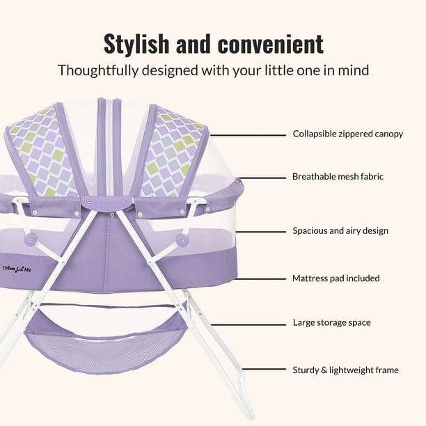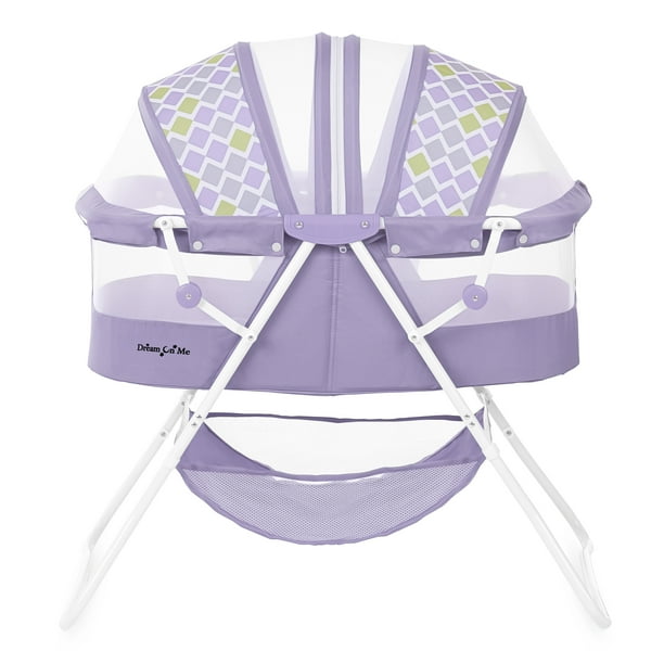 Dream On Me Karley Bassinet in Periwinkle, Quick Fold and Easy to Carry, Large Storage Basket