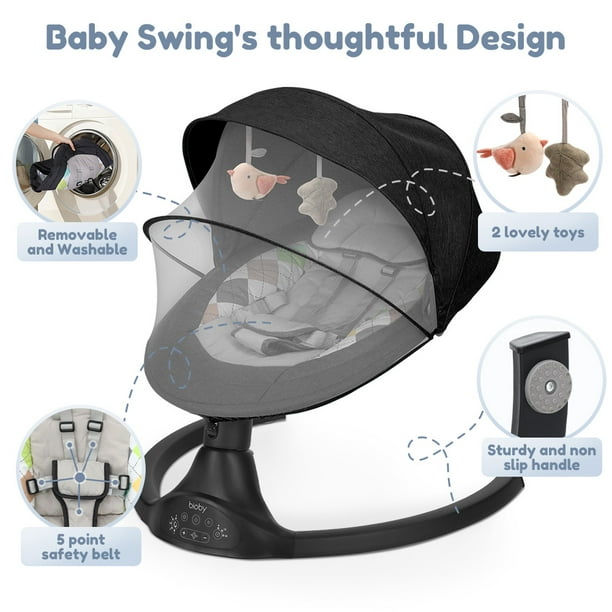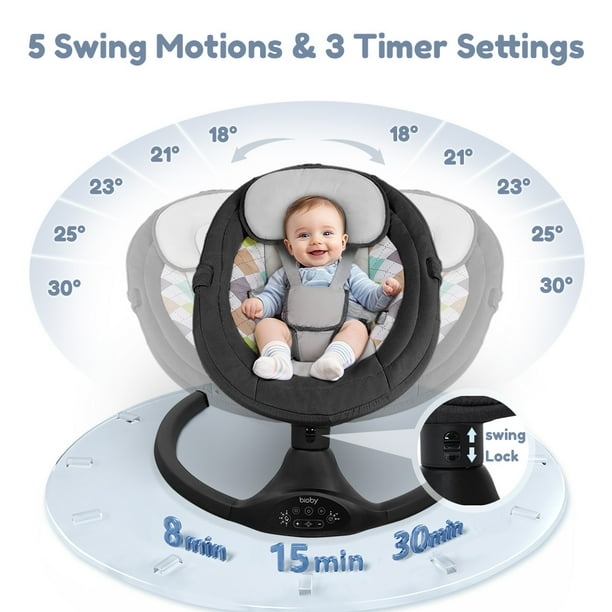 Electric Baby Swing, Bioby Infant Swing Rocker with Remote Control, 5 Sway Speeds, Bluetooth Music, Black