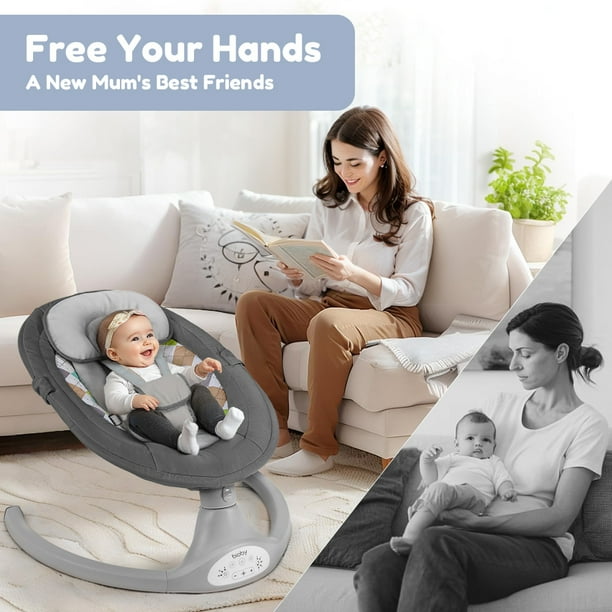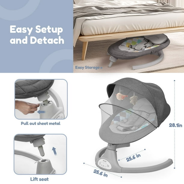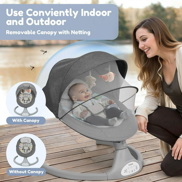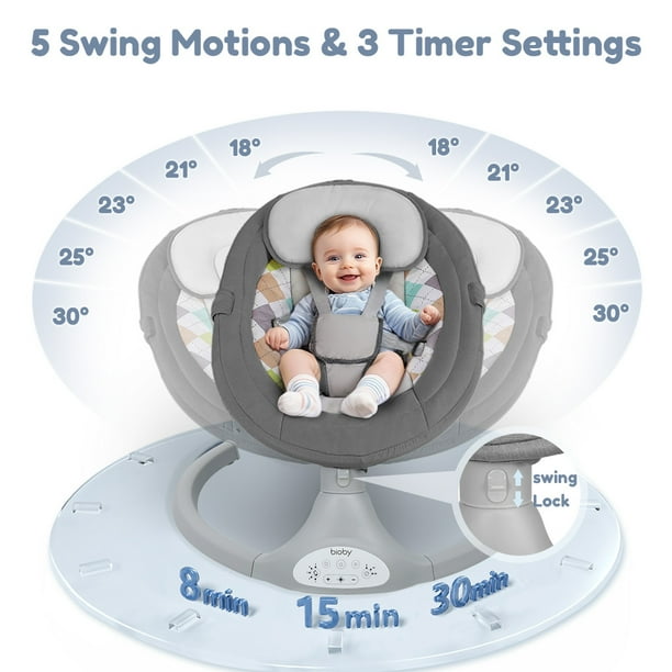 Electric Baby Swing, Bioby Infant Swing Rocker with Remote Control, 5 Sway Speeds, Bluetooth Music, Grey