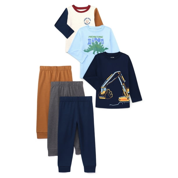 - 6-Piece Set Includes: Long Sleeve Slub Tee, Long Sleeve Brushed Jersey Tee, Long Sleeve Color Block Tee & French Terry Joggers