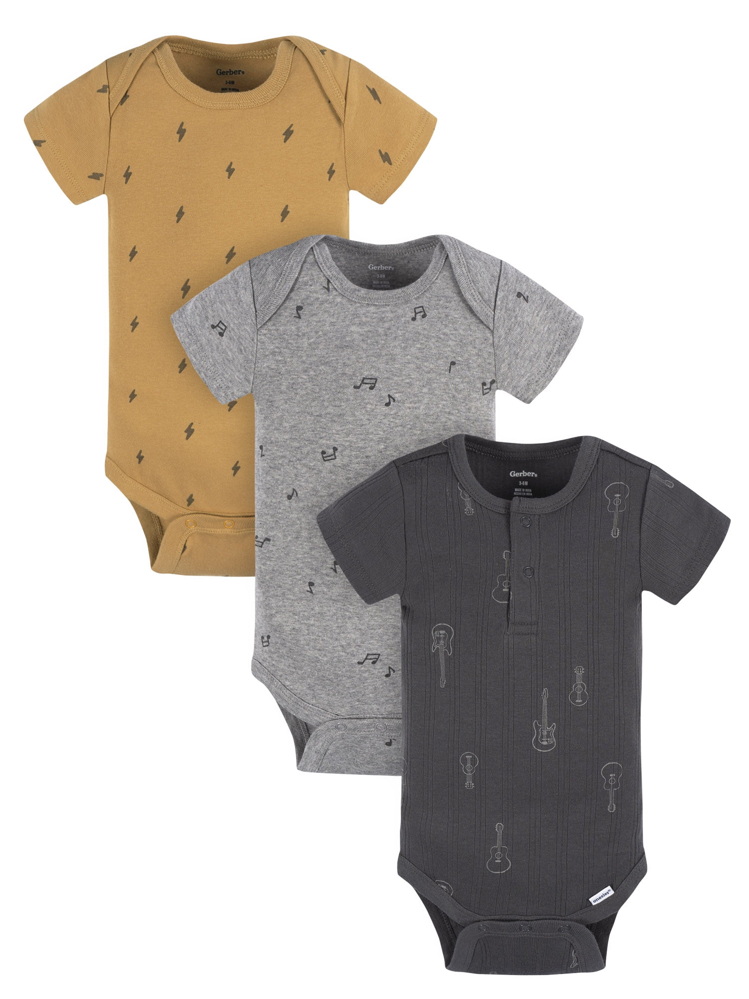 - Gerber Baby Boy Short Sleeve Bodysuits, 3-Pack, Sizes Preemie – 12 Months