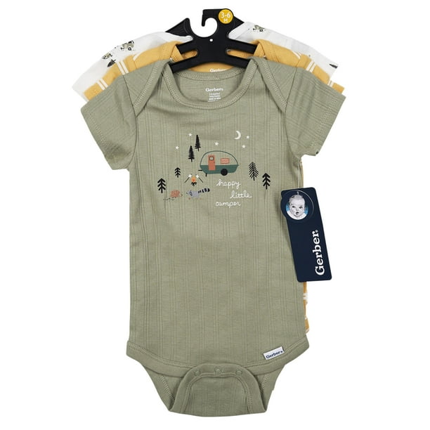 • Gerber Baby Boy Short Sleeve Bodysuits, 3-Pack, Sizes Preemie – 12 Months