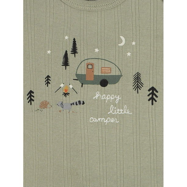 Elevate your baby boy’s style with Onesies® brand bodysuits! Crafted from 100% cotton, these bodysuits are gentle on sensitive skin, allowing him to explore his world in comfort. The lap shoulder neckline allows for easy removal in case of a dirty diaper, while the convenient snaps make diaper changes a breeze. Whether you’re strolling through the park or running daily errands, these convenient, comfortable are the perfect fit! For easy care, the bodysuits are machine washable to wear again and again. Our essentials have been independently certified with STANDARD 100 by OEKO-TEX so that you don’t have to worry about harmful substances. This pack includes three Onesies® brand bodysuits.