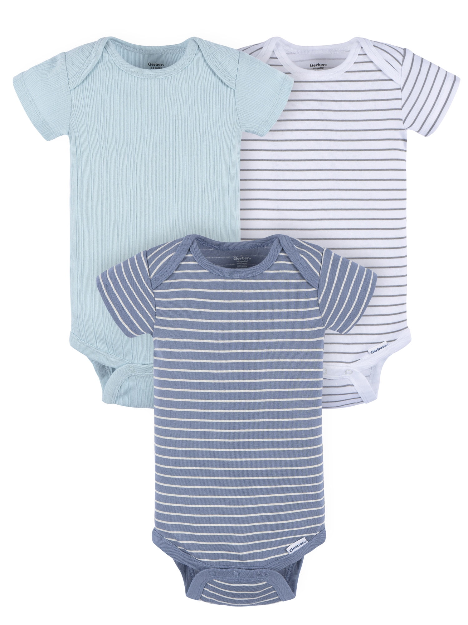 • Gerber Baby Neutral Short Sleeve Bodysuits, 3-Pack, Sizes Newborn – 24 Months