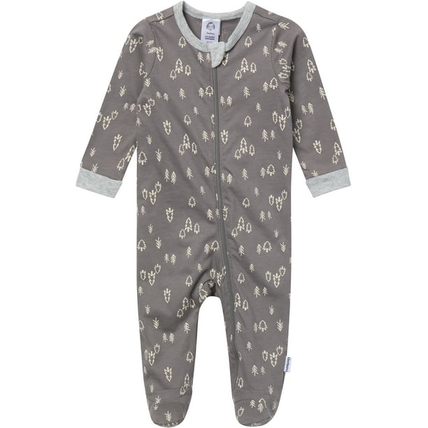 - Features: Made from 100% cotton to be gentle on sensitive skin; Full length zipper for easy dressing and diaper changes; Rounded neckline with zipper protector to ensure comfort; Cinched cuffs and footed style provide cozy fit for sleep or play