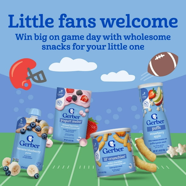 - FOR LITTLE FANS: Keep game day stress-free with baby snacks for little game day fans on the go. Whether you’re at a football party or cheering from home, these easy-to-pack snacks help parents keep up with their little fan’s hunger so everyone can enjoy the big game.