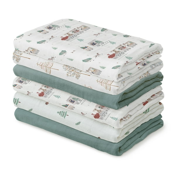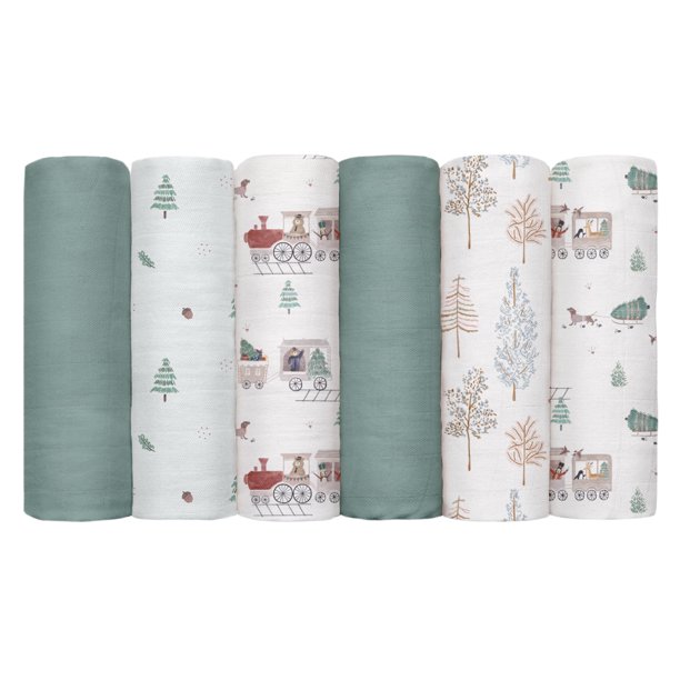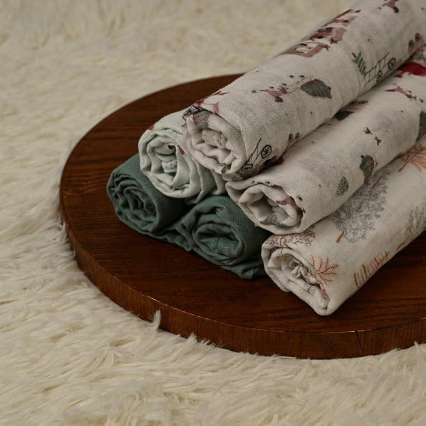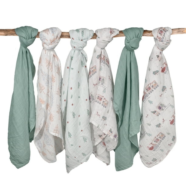 Gllquen Baby Muslin Swaddle Blankets 6-Pack Unisex, Swaddle Wrap Neutral Receiving Breathable Premium Organic Cotton Blankets for Newborn Infant Girls and Boys, 27 X 27″, Forest