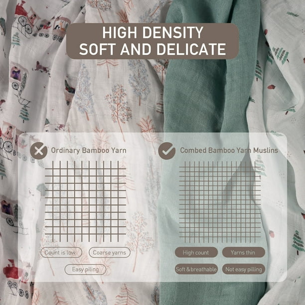 KIND TO BABY’S SKIN- Soft and silky, bamboo fabric is considered the best choice for babies. It is up to three times softer than regular cotton while maintaining the durability that cotton offers. Our swaddle blanket set is made from 70% viscose derived from bamboo, 30% cotton, making it softer, lighter, and more skin-friendly than 100% organic cotton. It is also breathable and gentle on sensitive skin, making these organic muslin squares perfect for your little one.