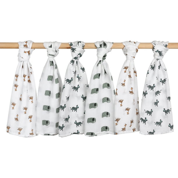 Gllquen Baby Muslin Swaddle Blankets 6-Pack, Swaddle Wrap Premium Organic Cotton Blanket for Newborn Girls and Boys, Soft Receiving Swaddle 4-Pack, Breathable, Unisex for Newborns Infant Boys and Girls, 27 X 27″, Elephants, Giraffes and Zebras