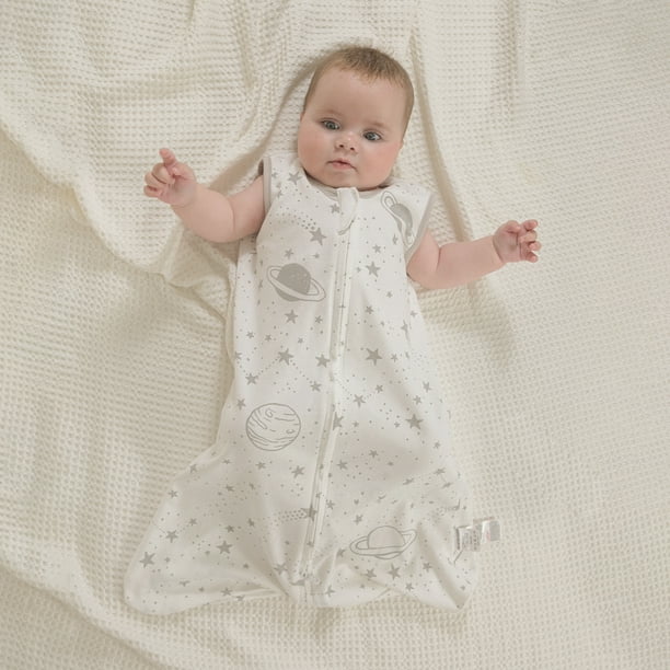 GLLQUEN Baby Sleep Sack Premium Organic Cotton Wearable Blanket for Newborns Boys Girls, Toddlers, Infant Sleep Bag with 2-Way Zipper, Super Soft Lightweight Sleeveless, Grey Planet and Star, Small