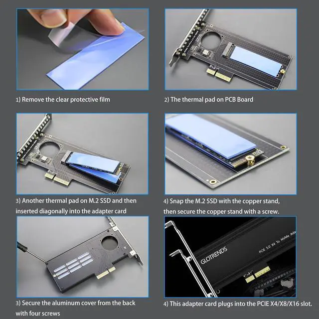 GLOTRENDS PA18 M.2 NVMe to PCIe 5.0 X4 Adapter for M.2 NVMe SSD, Extra Large Aluminum Heatsink, Regular and Low-Profile Bracket (Black) – Pappy Mall