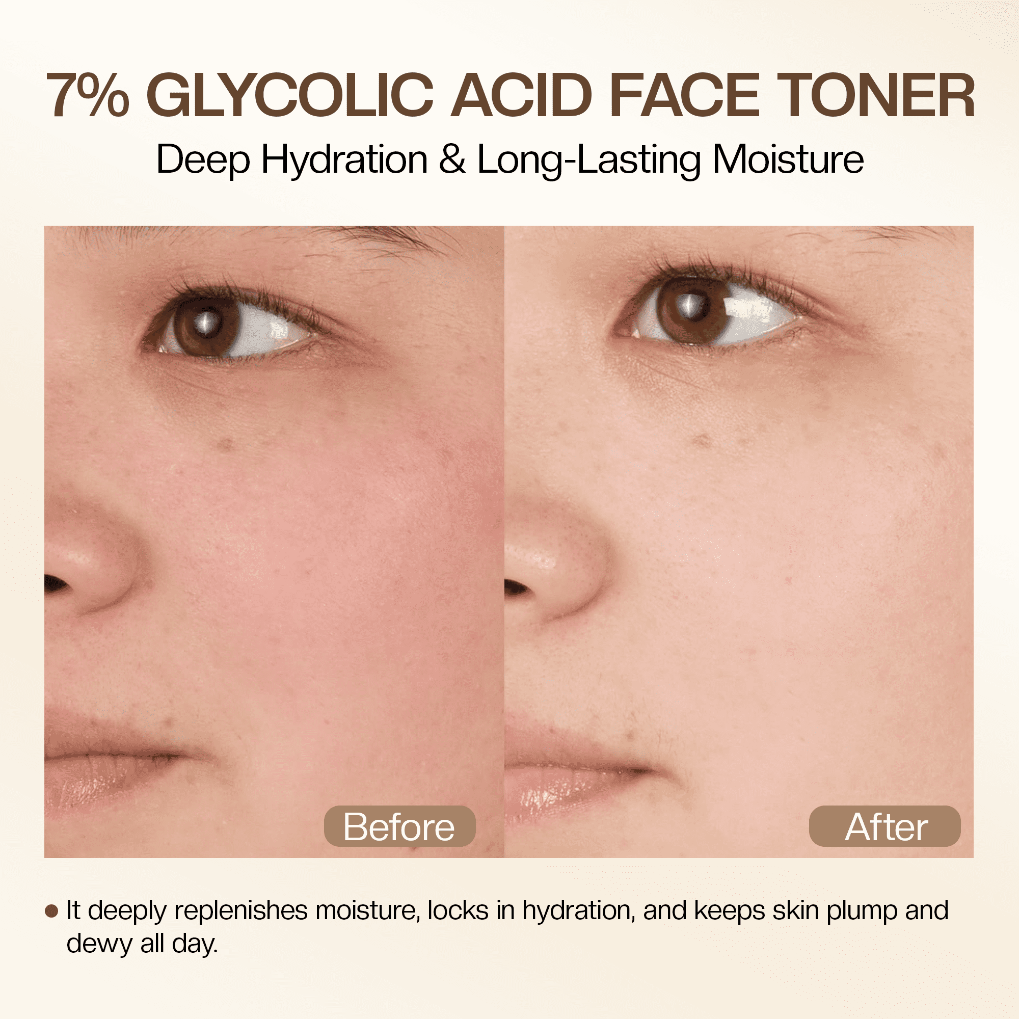 - GLYCOLIC ACID 7% SHRINKS PORES: Glycolic acid toner helps to shrink pores, bidding farewell to large pores and creating smoother and more delicate skin