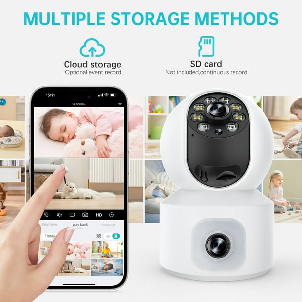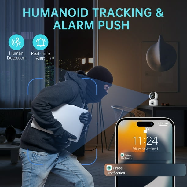 GPED Baby Monitor with Dual Cameras, 3K HD WiFi Security Camera W/ 360° PTZ & Fixed Camera,, Motion Tracking & Full-Color Night Vision for Baby Monitor/Pet Camera, 2-Way Audio…