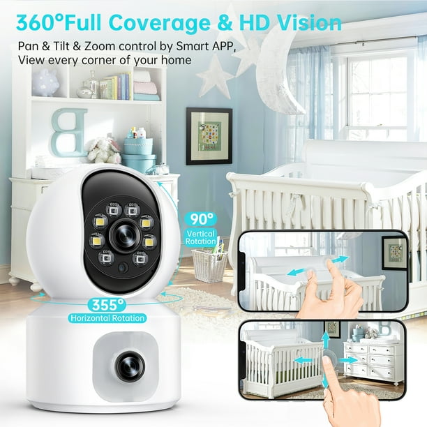 GPED Baby Monitor with Dual Cameras, 3K HD WiFi Security Camera W/ 360° PTZ & Fixed Camera,, Motion Tracking & Full-Color Night Vision for Baby Monitor/Pet Camera, 2-Way Audio…