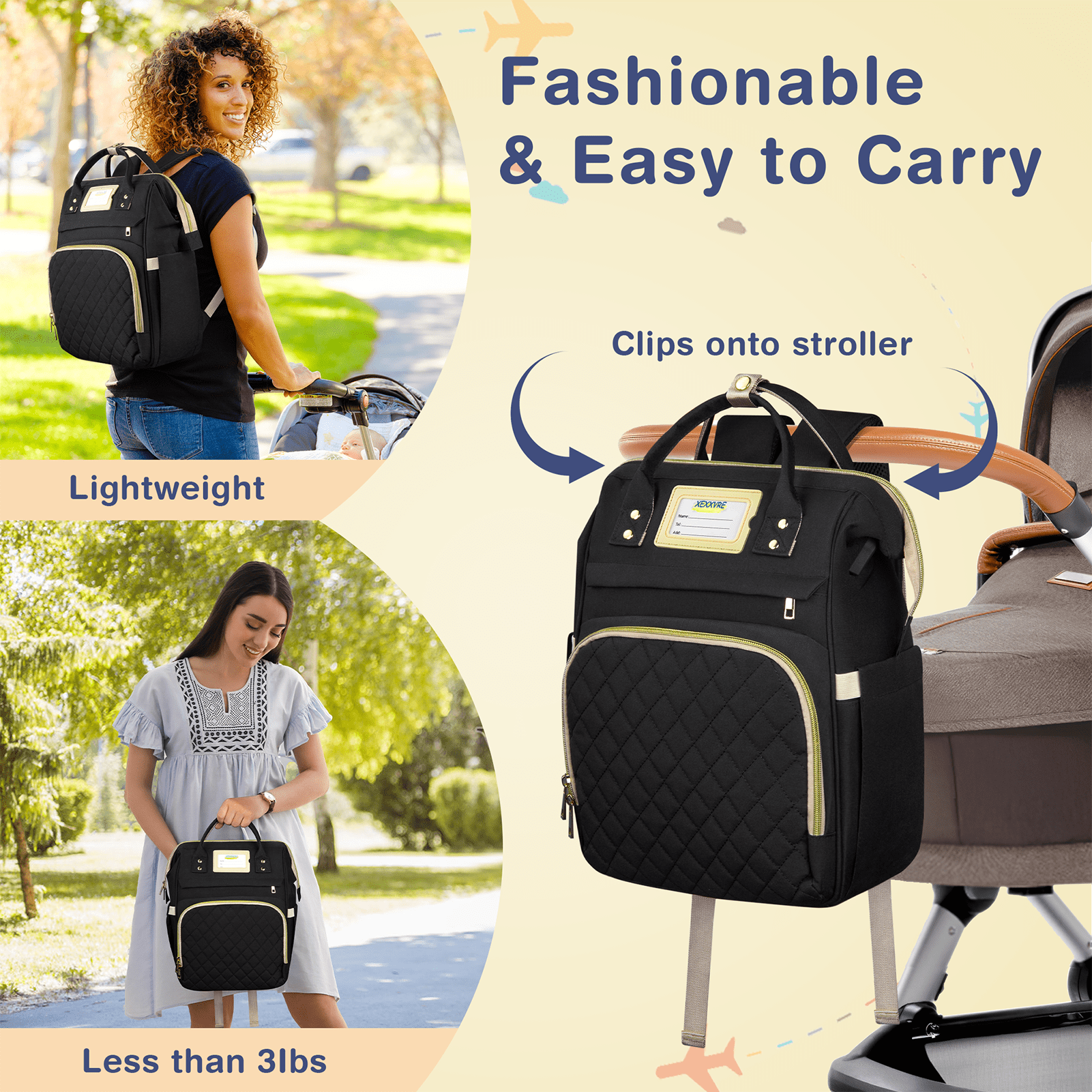 - 【Portable Diaper Bag】The extra wide opening makes this diaper backpack easy to find essentials in a pinch, and the double zippers allow for easy access and closure even with one hand! Our unisex baby bag is designed with cushioned ergonomic shoulder straps for lightweight portability. The easy-grip top handle makes travel easy for mom and dad. Built-in stroller straps easily secure your baby diaper bag to any stroller.