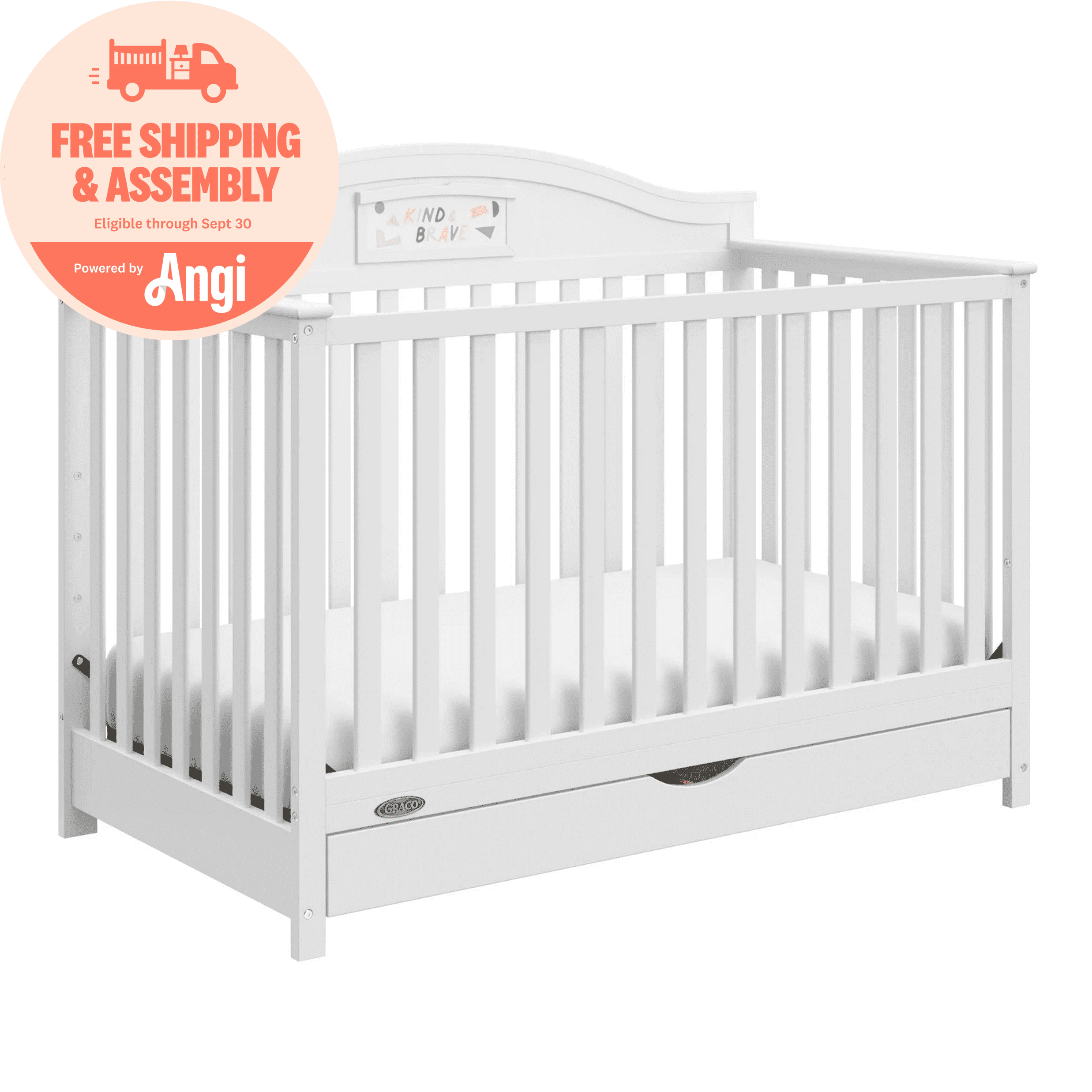 Graco Story 5-in-1 Convertible Baby Crib with Drawer and Reversible Headboard, White