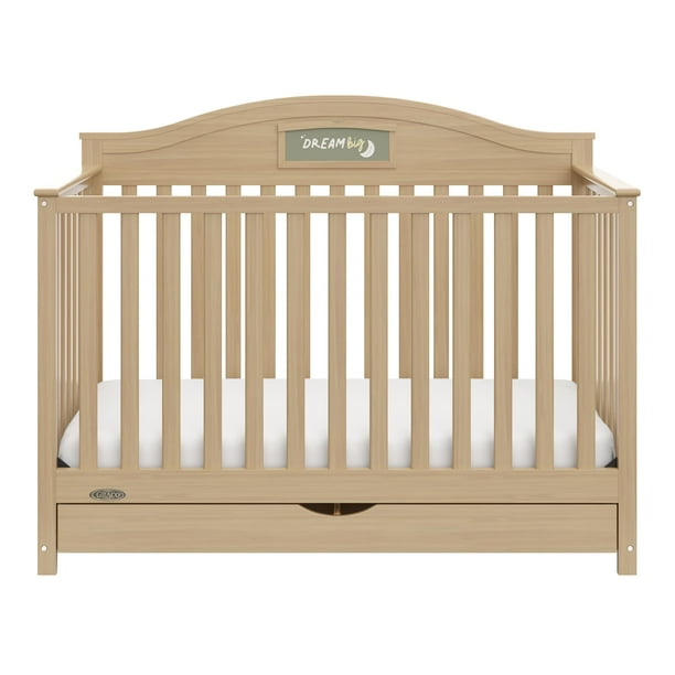 Tell your own story and personalize your child’s crib with the all-new Graco Story 5-in-1 Convertible Crib. With its reversible headboard and customizable artwork panel, the Story gives parents the freedom to personalize their crib’s look. The Story also features the space-saving convenience of a full-size storage drawer, allowing parents to store and organize nursery essentials beneath the crib. The Story is crafted from pine wood, engineered wood, and wood composites, includes Euro drawer glides, and its applied finish has been tested to meet or exceed the applicable ASTM and CPSIA safety standards. The Graco Story 5-in-1 Convertible Crib with Drawer is GREENGUARD Gold Certified — Certified products are screened for more than 10,000 chemicals and VOCs known to pollute indoor air. Also, the Story is JPMA Certified — meaning it’s been expert tested by third-party, accredited laboratories to meet or exceed all of the applicable category voluntary and mandatory safety standards. Designed to adapt to your growing baby, the Melrose is equipped with an adjustable mattress support base with 4 different height options – meaning, the height of the mattress support base can be lowered as your child grows (please note, this crib may only be used until your child can easily climb out or is taller than 35 inches). To support your child’s journey from babyhood to toddlerhood (and beyond), the Story is able to be converted from a crib to a toddler bed (compatible toddler guardrail kit sold separately), daybed, and full-size bed with headboard and optional footboard (compatible with full-size crib conversion kit, sold separately). Graco is the proud recipient of the Parent Tested Parent Approved (PTPA) Seal of Approval for nursery and children’s bedroom furniture, 2023 PTPA Top Product Award, and the 2020-2023 Women’s Choice Award for 9 out of 10 Recommended Baby & Kids Furniture. Backed by a 1-year limited manufacturer’s warranty. Assembly required.