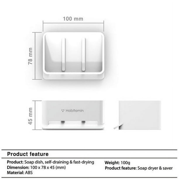 • With its simple yet functional design, this soap dish is the perfect size to fit the needs of any bathroom, bathtub or kitchen counter. Measuring at 10×7.8×4.5cm and weighing only 80g, it is both efficient and compact.
