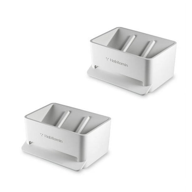 Habitamin Slanted soap Dish with suction cup, self-draining & Drying, Fast Natural soap Saver for Bathroom, Shower tub & Kitchen Sink Household (2 PCS, White)
